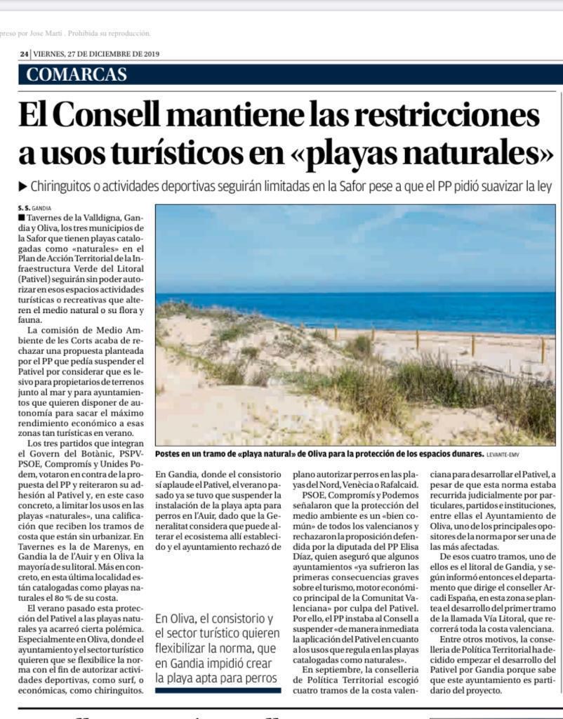 El Pativel fue el documento estrella con el que el gobierno del Botànic quiso marcar distancias con los anteriores gobiernos del Partido Popular. En sus líneas maestras venía a proteger todo el suelo incluido en los primeros mil metros del litoral blindando 7.500 hectáreas.
